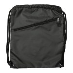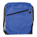 The Prevail Drawstring Backpack is constructed of 210D polyester. Extra thick & soft comfort drawstring shoulder cords. Features large front zippered pocket, earbud port (earbuds not included), and reinforced corners with metal grommets. Plastic adjuster clip for better fitting backpack. 1-color imprint will be screen printed, 2-color imprinted will be heat transferred. 17 1/2″ H x 14″ W