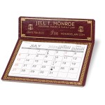 The Princeton Desk Calendar offers a foil stamped imprint and a 4 3/8″ x 3 1/4″ memo style 13 month date and a gold foil stamped border. Standard in white, wine or green all with a gold imprint, other than standard imprint colors available with an upcharge. Mailing envelopes are included, not inserted. 5 1/4″ W x 5 1/2″ H