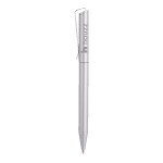 Sleek, simple, and sustainable—the Princeton Recycled Aluminum Pen is the perfect everyday writing companion. Crafted from recycled aluminum with a smooth metallic paint finish, this twist-action ballpoint pen feels as good in your hand as it looks on your desk. The silver clip adds a touch of polish while keeping it securely in place, and the black ink flows effortlessly for notes, lists, and brilliant ideas. A classic pen with an eco-conscious twist—literally. 5.63″ L x 0.39″ Diameter