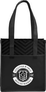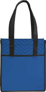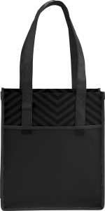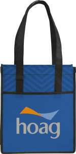On-trend design is printed directly onto the material for a new and fresh take on PolyPro. Perfect alternative to plastic bags. Open main compartment. Pen loop and front pocket. Reinforced binding and handles for added durability. 11” handle drop height. Gusset & Handle Decorating is Transfer/PhotoGrafixx Only and does not qualify for SureShip. This tote is the same item as Leed’s 2150-51, Printed Chevron Non-Woven Shopper Tote. 5.00″ D x 12.00″ W x 14.00″ H