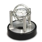 This 3-post gimbaled timepiece offers wonderful colorations. A black piano wood base contrasts with the sleek PNP silver of the posts and gimbaled quartz clock. 4.75″ W x 3.5″ H x 4.75″ D