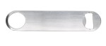 This bottle opener is constructed of stainless steel. It easily opens metal bottle caps and has a hole on the end for hanging or attaching to extending reels. Ideal bar tool for amateurs to professionals. 1 1/2″ H x 7″ W x 1/16″ D