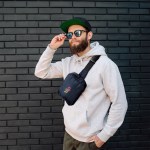 Made Of Combo: 150D Polyester With 210D PU/Polyester With Shiny Webbing And 140G Silk Floss Lining. Imitative Memory Fabric Alternative With Imitative Memory Fabric Feel. Can Be Worn As A Fanny Pack Or As A Chest Sling. 1.75″ D x 9″ W x 5.75″ H