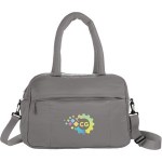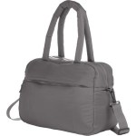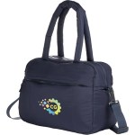 The puffer duffle is our newest addition to our puffer collection. Crafted from quilted rPET, this duffle has a super soft, puffy exterior. In neutral colors, this design feels like you’re carrying a cloud. It has a big open main interior to store your belongings, along with a front zippered pocket & trolley sleeve for traveling. Its side water bottle pocket is also perfect for your favorite drinkware. Stay comfortable while carrying this duffle with its two handle options. 7.00″ D x 16.00″ W x 11.60″ H