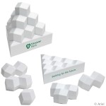 Pyramid Stack Puzzle Set, Contains base, plus five single and multi pyramid pieces and can be stacked in many configurations, Two or more puzzles can be combined for added fun. Note that is has removable parts and is NOT intended for small children. Complies with Prop 65. 3.5″ L x 3.5″ W x 3.5″ H