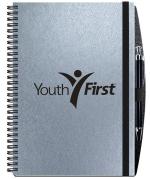 This journal has a heavyweight cover with 60 Lb. white offset sheets pre-printed with light gray rules printed on both sides. Comes wire-O bound on the left side with a heavyweight black pen safe back and a pen. Timeless, elegant, and a perfect way to get your message or logo seen in the office, boardroom, or classroom. Supremely practical item – a great way to connect to a client. 7″ W x 10″ H