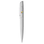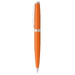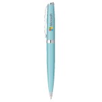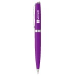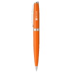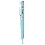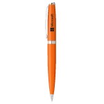 Rainbow Sherbet Collection, Ballpoint, Metal, Metallic Finished Barrel, Twist Action, Retractable, Pocket Clip, Center Band, Slant Top, Shiny Chrome Accent, Round, Cylindrical, Stainless Steel, Brass. 5.5″ D x 0.5″ W