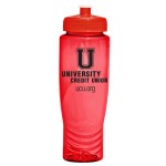 Translucent plastic bottle, 28 oz Polyfresh (TM). Recyclable and BPA free. Wide mouth perfect for ice cubes. Push/pull twist-on cap free assembly. Same color, second side or wrap imprint at no additional charge. Ounce gauge molded into back of bottle. Size: 9 1/2 H x 3 Diameter. 3.0″ W x 9.5″ H x 3.0″ D