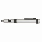Our Rainer 7-in-1 utility pen gets the job done no matter the situation. With a compass, LED light (3-3.5 Lumens), ballpoint pen, capacitive stylus, phone stand, and Phillips and flat head screwdriver, you’ll always have the right tool within easy reach. The capacitive stylus tip works with touch screen devices and the unique, screw-off phone stand provides a hands-free solution while you work. Three mercury-free AG3 batteries included. Complies with Prop 65. 9/16″ W x 5 7/8″ H x 11/16″ D