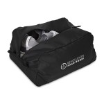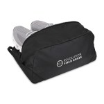 Keep shoes protected and separate. The Rally Recycled Shoe Bag is made from 100% recycled materials with a durable 600D bottom panel. Designed to fit up to Men’s size 12/Women’s 13.5, it keeps footwear away from clothes and gear. Features a wipeable interior and top grab handle-perfect for travel, gym, or work. Complies with CPSIA, Prop 65. 8.5″ W x 6″ H x 12″ L