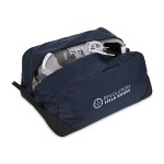 Keep shoes protected and separate. The Rally Recycled Shoe Bag is made from 100% recycled materials with a durable 600D bottom panel. Designed to fit up to Men’s size 12/Women’s 13.5, it keeps footwear away from clothes and gear. Features a wipeable interior and top grab handle-perfect for travel, gym, or work. Complies with CPSIA, Prop 65. 8.5″ W x 6″ H x 12″ L