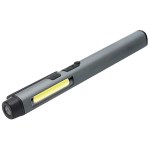 Approx 2 – 3 hours of charge time Approx 3 – 4 hours of run time Magnetic built-in clip Function button switches between: XPE LED (bottom), COB Low (barrel), and COB High (barrel) Includes built-in rechargeable battery and Type-C USB charging cable Aluminum body with an anodized oxidation finish Press and hold power button to turn on the UV-A LED (top) Output: up to 150 lumens Bulb types: XPE 3W LED, COB (Chip on Board) and UV-A LED. 0.75″ D x 0.625″ W x 6″ H
