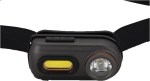 Left function button switches between 2 LED spotlight modes: high and low Battery Type: Li-thium Polymer 3.7V 300 mAh Adjustable light angle Output: up to 230 lumens (LED) and 90 lumens (COB) Bulb Type: 5W LED and 3W COB Working time: up to 40 minutes (LED); up to 90 minutes (COB) Aluminum and ABS shell with adjustable elastic head strap Includes a Micro USB charging cable Approx recharge time: 1.5 hours Right function button switches between 2 COB floodlight modes: white and red. 1.125″ D x 2.5″ W x 1.25″ H