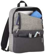 The Reclaim Recycled 15” Computer Backpack exterior is made from 100% recycled materials, providing a sustainable yet durable bag for your accessories and electronics. It features two zippered front pockets, plus a spacious zippered main compartment containing a 15” laptop sleeve. A partnership with 1% For The Planet ensures that one percent of your purchase gets donated to nonprofit environmental protection groups. The Reclaim Recycled 15” Computer Backpack is ideal for commuting, traveling, or regular daily use. 5.00″ D x 12.00″ W x 16.50″ H