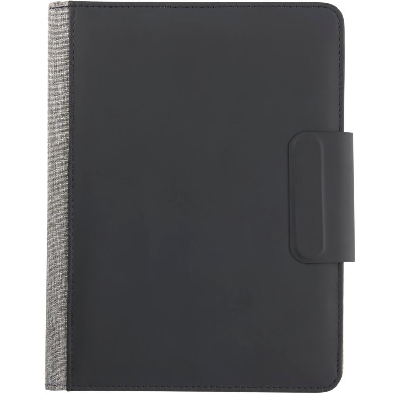 The Reclaim RPET MagClick Fast Wireless Journal is made of post-consumer recycled fabrics. This specialty bound notebook features a RPET cover with recycled leather front pocket for storing documents, smartphones, and other essentials. This notebook includes 64 sheets of FSC® recycled lined paper. Also includes 15W wireless charger with magnet, 1m TPE charging cable and interior elastic pen loop. Through a partnership with 1% For The Planet, one percent of sales of all EcoSmart® products are donated to environmental nonprofits. 1.40″ D x 6.96″ W x 8.97″ H