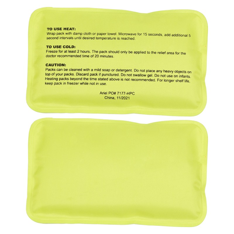 Rectangle Nylon-Covered Hot/Cold Pack is gel filled with soft cover feels very gentle on skin. Simply microwav for warm therapy or freeze for cold therapy. FDA Certified with material safety reports are available upon request. Reusable and easily cleaned with mild soap and water. Use instructions printed on item. Complies with FDA, Prop 65. 6″ L x 0.5″ W x 3.5″ H