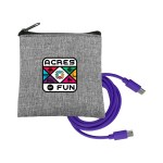 Introducing our eco-friendly zippered pouch made from recycled PET materials. This colorful 4-foot Type C to Type C charging cable is the perfect accessory for all your charging needs. Upgrade your charging experience with this high-quality and vibrant cable that is not only stylish but also durable. Say goodbye to tangled cords and hello to convenience with this must-have accessory. Charge your devices in style while reducing your carbon footprint with our sustainable and innovative products. Make a statement with our eco-friendly zippered pouch and charging cable, the perfect combination of style and sustainability. Complies with CE, Prop 65. 3.5″ L x 4″ H