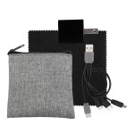 Introducing our eco-friendly Recycled PET Zippered Pouch, perfect for storing all your tech essentials. The UL Square USB Wall Charger is not only UL Listed for safety but also comes with a patented design. Keep your devices clean with the Colorful 5 x 5 Recycled PET Cleaning Cloth. Stay charged on the go with the Colorful 4-in-1 Charging Cable, featuring multiple USB adapters. This innovative cable is compatible with IOS devices, Micro USB, and Type C USB, all with patented technology. Don’t worry about compatibility – this cable has both USB and Type C USB inputs for convenience. Upgrade your tech accessories with these stylish and sustainable options today. Complies with CE, cUL, FCC, Prop 65, UL. 3.5″ L x 4″ H