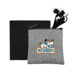 Introducing our eco-friendly collection: a chic zippered pouch made from recycled PET, perfect for storing your essentials on the go. Enhance your listening experience with our vibrant travel ear buds, designed for both style and functionality. Keep your devices spotless with our colorful 5 x 5 Recycled PET cleaning cloth, crafted to effortlessly wipe away dirt and smudges. Join us in reducing waste and making a positive impact on the environment with these sustainable accessories. Complies with CE, Prop 65. 3.5″ L x 4″ H