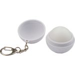 Score big with the Recycled Golf SPF15 Lip Balm with Keychain. This golf ball-shaped lip balm combines playful design with nourishing care. The smooth, lightly flavored vanilla formula keeps lips soft and moisturized while SPF15 helps shield lips from harmful UV rays. They attached keychain makes it easy to clip onto- bags, water bottles or sports gear – perfect for outdoor sports, team events and giveaways. 1.49″ D x 1.49″ W x 3.14″ H