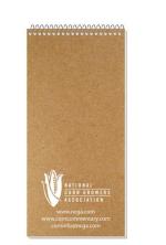 This notebook features a natural 22 pt. chipboard cover made with 100% post-consumer recycled content, so chip color may vary by notebook. Includes 50 Lb. white recycled offset sheets with light gray rules and a recycled symbol printed on 1 side of each sheet in lower right corner. Company logo on each sheet is also available. Comes coil bound on top. 4″ W x 8 1/4″ L