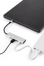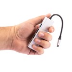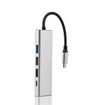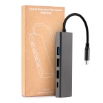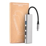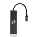 Eco-friendly USB hub made from 70% recycled aluminum. Connect multiple devices to the hub to network your devices, enabling data transfer between them or quick charging. Versatile with a USB-C plug input and four different output ports:?Two USB-A (USB2.0) 480Mbit/s (Max); SuperSpeed (USB3.0) that supports a maximum transfer speed of 5 (Gbit/s) gigabits per second (Gbit/s); USB-C*1 100W PD pass-through port (supports USB 2.0 data transfer function). Cable length 6.3″. Kraft gift box included. 1% of proceeds of this item is donated to Water.org, a nonprofit organization that has transformed millions of lives around the world with access to safe water and sanitation. Complies with CCPSA, CPSIA, FDA, RoHS. 3.9″ W