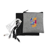Introducing our eco-friendly collection of accessories that are not only stylish but also sustainable. Our recycled PET zippered pouch is perfect for keeping your essentials organized on the go. The sleek white USB Type C ear buds deliver high-quality sound while reducing plastic waste. Our colorful 5 x 5 recycled PET cleaning cloth is not only vibrant but also environmentally friendly. The versatile 4-in-1 charging cable with multiple USB adapters is a must-have for all your devices. Compatible with IOS devices, Micro USB, and Type C USB, this patented cable is the ultimate solution for all your charging needs. Upgrade your accessories with our innovative and eco-conscious products today. Complies with CE, Prop 65. 3.5″ L x 4″ H