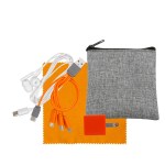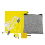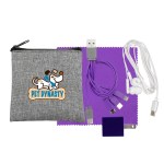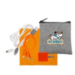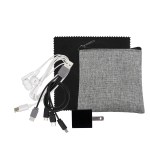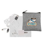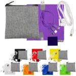 Introducing our eco-friendly Recycled PET zippered pouch, perfect for carrying all your tech essentials. Pair it with our sleek White USB Type C ear buds for a stylish listening experience. Charge your devices quickly and safely with our UL Square USB Wall Charger, featuring patented technology and UL Listing for peace of mind.Keep your screens sparkling clean with our vibrant 5 x 5 Recycled PET Cleaning Cloth, a colorful and sustainable choice. Stay connected on the go with our versatile 4-in-1 charging cable, equipped with a Multiple USB adapter for convenience. This innovative cable is compatible with IOS devices, Micro USB, and Type C USB, boasting patented technology for reliable performance.Upgrade your tech accessories with our high-quality and environmentally friendly products. Make a statement with our eye-catching designs while reducing your carbon footprint. Experience the difference with our range of innovative and sustainable tech solutions. Complies with CE, cUL, FCC, Prop 65, UL. 3.5″ L x 4″ H