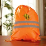 Reflective stripes provide night-time visibility. 210D Neon polyester. Easy drawstring closure. Reinforced corners with grommets. 14.0″ W x 19.0″ H x 0.0625″ D