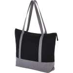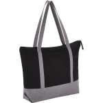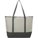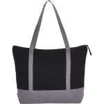 The Repose 10oz Recycled Cotton Zippered Tote is made from pre-consumer recycled cotton and features on-trend color blocking. It also features double handles, a front slash pocket and a zippered main compartment. Through a partnership with 1% For The Planet, one percent of sales of all EcoSmart® products will be donated to nonprofits dedicated to protecting the planet. 4.00″ D x 18.25″ W x 13.50″ H