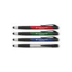 Give your Customers more value with innovative design! New pen + stylus combination. MagnaImprint™ Soft Rubber Grips. Silicone Tip. Black Ink. Patent: D691,197. Complies with Prop 65.