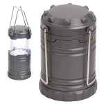 Retro Pop Up Lantern has a unique retro design, powerful 100 lumens LED light automatically turns on when top is pulled up. Handles fold neatly against side of lantern. Powered by 3 AA batteries, inserted. Complies with Prop 65. 3.375″ L x 5″ W x 3.375″ H