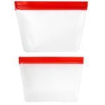 Introducing our versatile Medium and Large Reusable Food Storage Bags, the perfect eco-friendly solution for storing your food. Made from BPA-free materials, these bags are not only good for the environment but also safe for you and your family. Say goodbye to single-use plastic bags and hello to a more sustainable way of storing your food. Choose our reusable storage bags for a convenient and environmentally responsible option for all your food storage needs. Complies with Prop 65. 9.25″ L x 7″ H x 3″ W