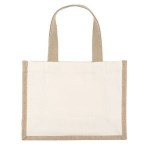 The Reyna™ Natural Tote combines durable 10-oz. cotton front and back panels with stylish natural-colored jute gussets and bottom. Interior gussets are laminated for added durability. Handles measure 1/14″ x 16″ long. *Due to the natural character of cotton fabric, slight color variances will occur between bags. 12″ W x 5″ D x 9″ H