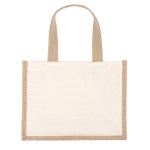 The Reyna™ Natural Tote combines durable 10-oz. cotton front and back panels with stylish natural-colored jute gussets and bottom. Interior gussets are laminated for added durability. Handles measure 1/14″ x 16″ long. *Due to the natural character of cotton fabric, slight color variances will occur between bags. 12″ W x 5″ D x 9″ H