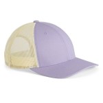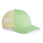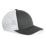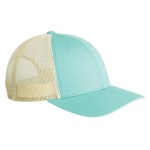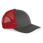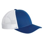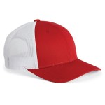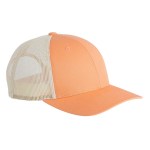 47/28/25 cotton/nylon/polyester; structured, six-panel, low-profile; pre-curved visor; adjustable plastic snapback; size: Medium/Large (7″ – 7 3/4″). Mill#115.