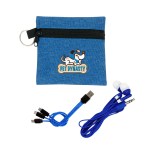 Introducing the Ridge Techie Pouch, the ultimate travel accessory. This stylish pouch features a convenient zipper and keyring, perfect for keeping your tech essentials organized and easily accessible on the go. Accompanying the pouch are our vibrant travel earbuds, designed to bring a pop of color to your travels. And with the Ridge 3-in-1 charging cable, you can say goodbye to tangled cords and hello to convenience. This versatile cable includes a Multiple USB adaptor, making it compatible with IOS devices, Micro USB, and Type C USB. Our products are not only practical but also innovative, as they are all patented for their unique design. Choose from a variety of full-color options to suit your style. For more information, please refer to our Terms & Conditions. Upgrade your travel experience with Ridge today! Complies with CE, Prop 65. 4″ L x 4″ H