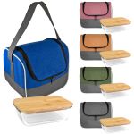 Introducing the Ridge Cooler Bag, designed with a convenient full-top opening for easy access to your items. Paired with the stylish Bamboo Glass Container, this set is perfect for keeping your food and drinks fresh and organized on-the-go. Complies with FDA, Prop 65. 9.5″ L x 8″ W x 7.5″ H