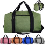 Introducing our durable Duffle Bag, featuring reinforced handles and a detachable shoulder strap for easy carrying. The convenient zipper closure ensures your belongings stay secure, while the bag can effortlessly fold flat for convenient storage when not in use. Plus, with the added bonus of a plastic insert for extra support, this bag is perfect for all your travel needs. Complies with Prop 65. 25″ L x 14″ H x 8″ W