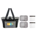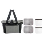 Introducing the Ridge Cooler Picnic Bag with a convenient snap closure for easy access. This set includes two Lunch To Go Containers with secure clip tops for storing your favorite meals on the go. Additionally, you will receive two Reusable Sandwich Bags with zip closures to keep your sandwiches fresh and delicious. Enjoy a hassle-free picnic experience with this stylish and functional set. Complies with FDA, Prop 65. 17.5″ L x 9.25″ W x 9″ H