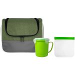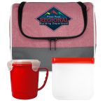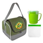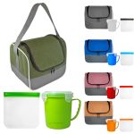 Introducing the ultimate lunch set for on-the-go convenience and style. The Ridge Cooler Bag features a full-top opening for easy access to your favorite meals and snacks. Keep your soup piping hot in the Soup Mug with a sturdy handle for comfortable carrying. Say goodbye to single-use plastics with the Reusable Sandwich Bag, complete with a secure zip closure to keep your sandwich fresh all day long. Make every mealtime a breeze with this premium set designed for practicality and sustainability. Complies with FDA, Prop 65. 9.5″ L x 7.5″ H x 8″ W
