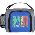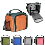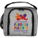 Stay cool and stylish with our insulated zippered lunch bag featuring a full front opening for easy access (Please note: lunch containers are not included). Keep your beverage handy with a convenient side pocket, and enjoy the convenience of the sturdy handle for easy carrying. This lunch bag is designed to hold up to 8 12oz. cans, making it perfect for a day out or a quick lunch on the go. Complies with Prop 65. 9″ L x 8″ H x 7″ W