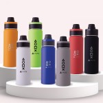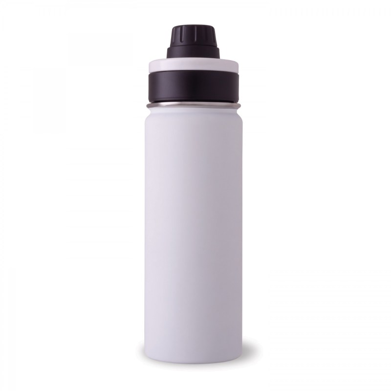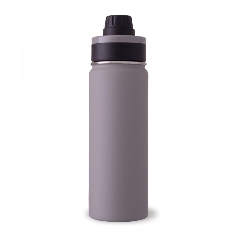The 600 ml / 20 oz Ring Leader is a double wall vacuum insulated bottle made with pro-grade 18/8 stainless steel. It features a matte rubberized finish paired with a leakproof thread lid. The lid has a round drinking nozzle with a flip-top closure. For easy carrying, a concealed carrying ring is fitted to the lid and locks in place when not in use. Its wide mouth design makes it ice cube friendly and easy to clean. 2.2500″ L x 9.8800″ W x 2.8800″ H
