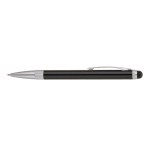 Stainless steel twist-action pen with gloss lacquer finish, etched matte silver trims and capacitive stylus that works with touch screen devices. Complies with Prop 65. 1/2″ W x 5 1/8″ H x 3/8″ D