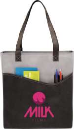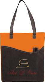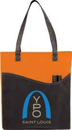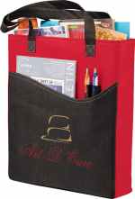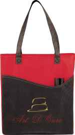 The Rivers Pocket Non-Woven Convention Tote has lots of storage including an open main compartment, front pocket and two pen pockets. Great for tradeshows and conventions, it’s also reusable and comes with 26-inch handles. Gusset & Handle Decorating does not qualify for one day turn. This tote is available in multiple colors. 3.00″ D x 15.00″ W x 17.00″ H