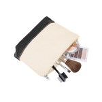 100% 10 Oz. cotton canvas with contrast stitching organizational pouch. Zippered top with flat color blocked bottom. Perfect for holding cables, pens, cosmetics, credit cards, and just about anything that needs organizing. Pair with matching tote bag. 2″ D x 5″ H x 8.5″ W