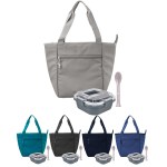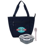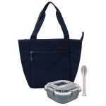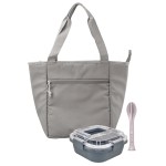 Introducing the Roam Zippered Cooler Tote crafted from eco-friendly recycled nylon, perfect for all your on-the-go needs. Pair it with our Carry On Lunch Box, made from recycled PP, for a sustainable way to enjoy your meals. Complete your eco-friendly set with our sleek fork, knife, and spoon cutlery set. Complies with FDA, Prop 65. 9″ L x 11″ H x 6″ W