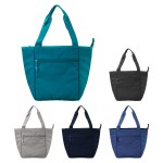 Stay cool and eco-friendly with our recycled insulated zippered cooler bag, crafted from recycled nylon materials. This innovative bag not only keeps your food and drinks at the perfect temperature, but it also helps reduce waste and protect the environment. The front zippered pocket is perfect for storing snacks or your phone, making it convenient for all your on-the-go needs. Choose sustainability without sacrificing style with our recycled insulated cooler bag. 9″ L x 11″ H x 6″ W
