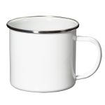 The Rockland enamel mug has a low style and vintage look, perfect for office or home. The three classic colors are complemented with a glazed black rim and extra large handle.