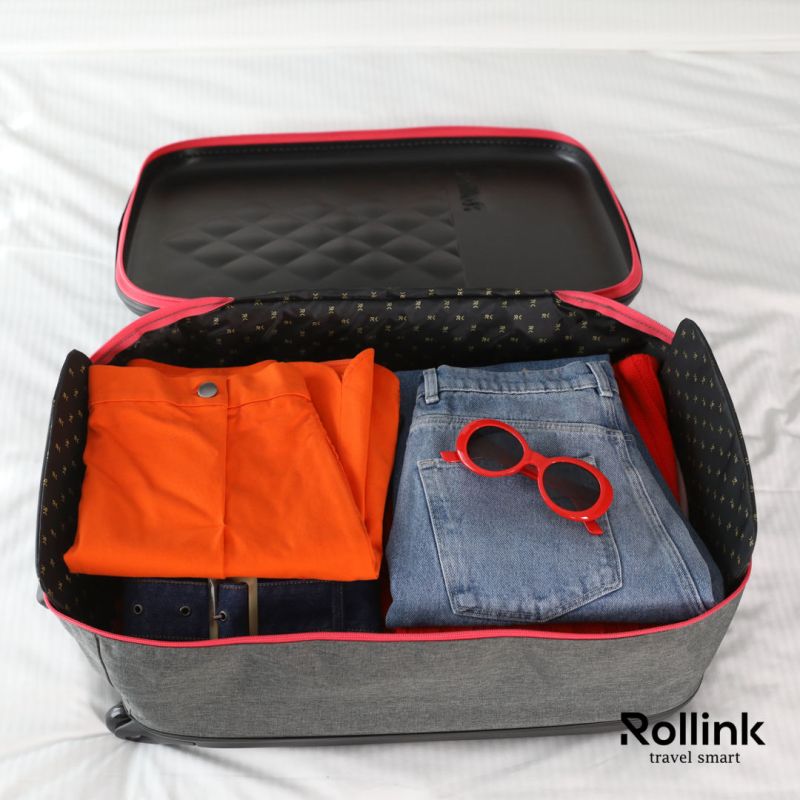 The RollinkĀ® Flex20 19.5″ Carry On Luggage is the world’s slimmest luggage! Product features:- Ideal for airlines requiring small carry-on bags such as Air Transat- Easily folds to 2″ when stored- Lightweight, durable & scratch-resistant hard side polypropylene shells- MĆ©lange high-quality water-resistant polyester fabric- Ergonomic Telescopic Handle- Exterior wheel design to maximize useful storage space- Quick-access side pocket- Fully lined interior- Weight: 1.9 kg / 4.19 lbs- Capacity: 35LProduct Size: 14.6″ W x 19.9″ H x 8.8″ D. 14.6″ W x 19.9″ H x 8.8″ D